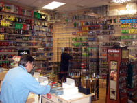 釣具屋さんだと思ったら、スポーツ用品全般のお店だったのですが、釣具コーナーはバスやパイク等のルアーに限定したプロショップになっていました。「ここは日本?」と錯覚しそうなほど、日本のメーカーのルアーやロッドが充実していて、特にエバーグリーンやイマカツが人気のようでした。面白かったのは日本やアメリカではまったく馴染みのないメーカーがいろいろあって、日本のルアーのコピーがたくさん売られていることでした。