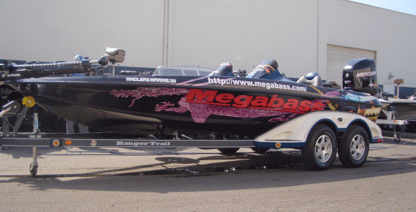 来週14日からカリフォルニア・デルタで始まるFLWウェスタシリーズ第2戦に参戦のため、児玉一樹さんが現地入りしていますが、児玉さんは前戦まで使用していたナイトロボートからレンジャーZ21に乗り換えて参戦します。児玉さんの新しいボートの写真が届いたのですが、なんとメガバスのラッピングが施されています。たぶん、メガバスのラッピングは初めてなんじゃないでしょうか。ブラックベースの渋めのデザインですが、竜が舞うのは、あの社長の趣味ですね。アメリカ人にはどう映るんでしょうか?