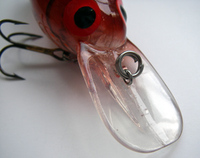 Brad’sとは違って、リップのラインアイ部にくぼみはなく、後期のウィグルワートをコピーしたと思われますが、リップに厚みがあって、エッジもシャープさに欠けます。そのためなのか、左右のイレギュラーなふらつきはウィグルワートほどではありません。あの千鳥足アクションはやはり偶然の産物なのでしょうか? ウェイトがステンレスボールのせいか軽い感じのラトル音です。ボディー全体の重量がウィグルワートよりも約2gも軽いために浮力が大きく、潜行深度がウィグルワートに比べて浅い特徴があります。
