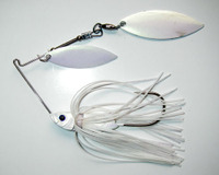 日本ではカラーブレードのスピナーベイトって不人気ですよね。一部のマニアな方がチャートや赤系のブレードを使っているぐらいでしょうか? 最近、ボクが注目しているのはブレードもヘッドもスカートも真っ白の通称ホワイト・オン・ホワイトです。アメリカでは定番とはいかないまでも、けっこうこのカラーが売られています。