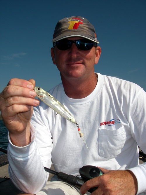 今回はセントラルオープンにプロでフル参戦している佐藤義和さんに同行させてもらっています。プラクティス2日目に、佐藤さんがトリキシーシャークでいいバスをキャッチしました。でも、シャローは散発で、爆発力を感じられません。
