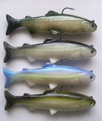 Product  ハドルストンは相変わらず西海岸では大人気です。すでにACプラグのカシータスベイトスミスといったそっくりさんも登場していますが、以前、ハドルストンのハード版みたいなABTルアー社のワグテールを紹介しましたが、ABTルアー社はついにワグテールのソフト版、その名もソフトワグテールを発売しました。まどろっこしいことをして、結局はハドルストンにそっくりです。ただ、カラーがイケてません。まあ、6インチサイズという手頃なサイズが最大のセールスポイントなんでしょう。ABTルアーはキングシャッドが当たって、けっこう儲かったんでしょうか? こんなソフトワグテールが1個30ドル売れたら、それこそボロ儲けなんでしょうね。