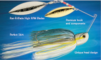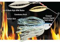 ストライクキングから2009年シーズンの新製品として登場したボトム・ドゥウェラー(写真上、カラーはお約束のセクシーシャッド)とバーナー(写真下)は2つのまったく異なるコンセプトのスピナーベイトです。ボトム・ドゥウェラーはディープのボトムをスローローリングで使うために、バーナーは高速リトリーブでもバランスを崩さず、水面から飛び出さないようにデザインされたものです。
